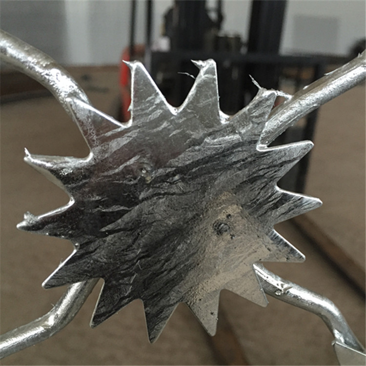 1、梅花刺隔離網(wǎng)為單層梅花刺片網(wǎng),直徑不小于7.5cm,刺片厚1.5mm,采用Q235低碳鋼板沖壓成型。