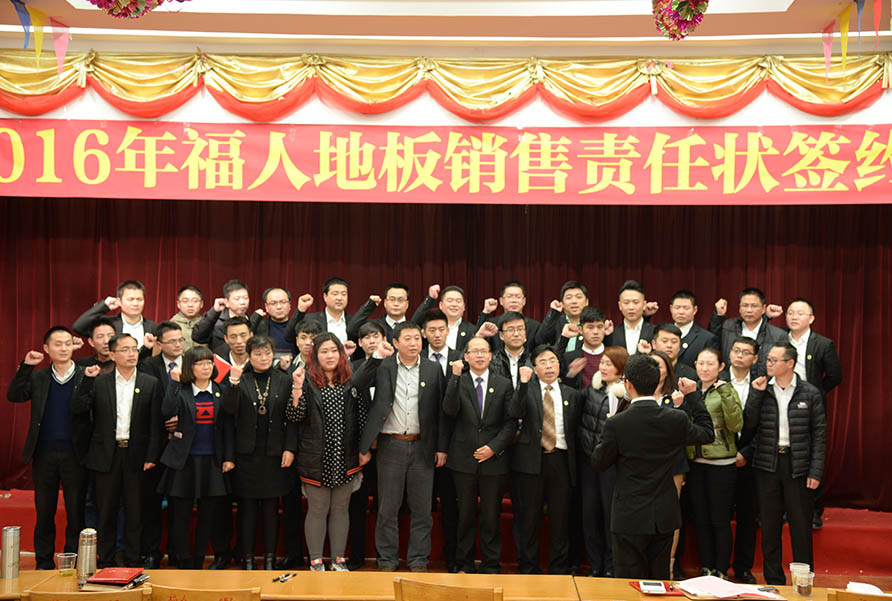 2016年1月15日,中林福人2016年銷售目標簽約儀式在福人集團2樓禮堂隆重舉行,中林福人董事長畢見勇、銷售總監(jiān)石開洪、各大區(qū)經(jīng)理、莆田工廠、總部及分部各成員出席此次會議。