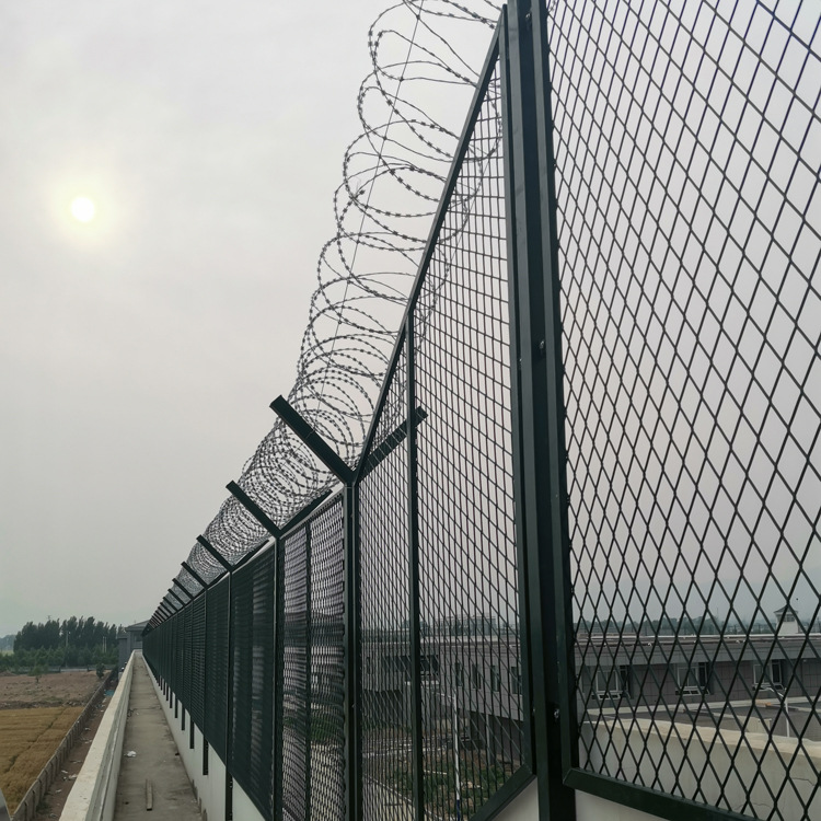 看守所內外監墻巡邏道隔離網上部安裝刀片剌網(剌絲滾籠) ,刀片剌網具有嚇阻、防翻越等效果材質堅硬,高強度高張力,造型設計獨特,不宜觸摸因而能達到極好的防護隔離效果看守所內外監墻巡邏道隔離網還具有施工簡便經濟實用等優點