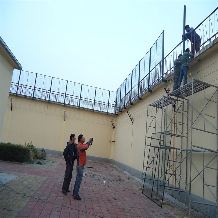 看守所監墻巡邏道隔離網,采用大直徑高強度合金鋼絲制作,具有防攀爬、抗沖擊、抗剪切特性和良好的震慎作用, 專用于監獄看守所、警戒線軍事基地等高安全領域。