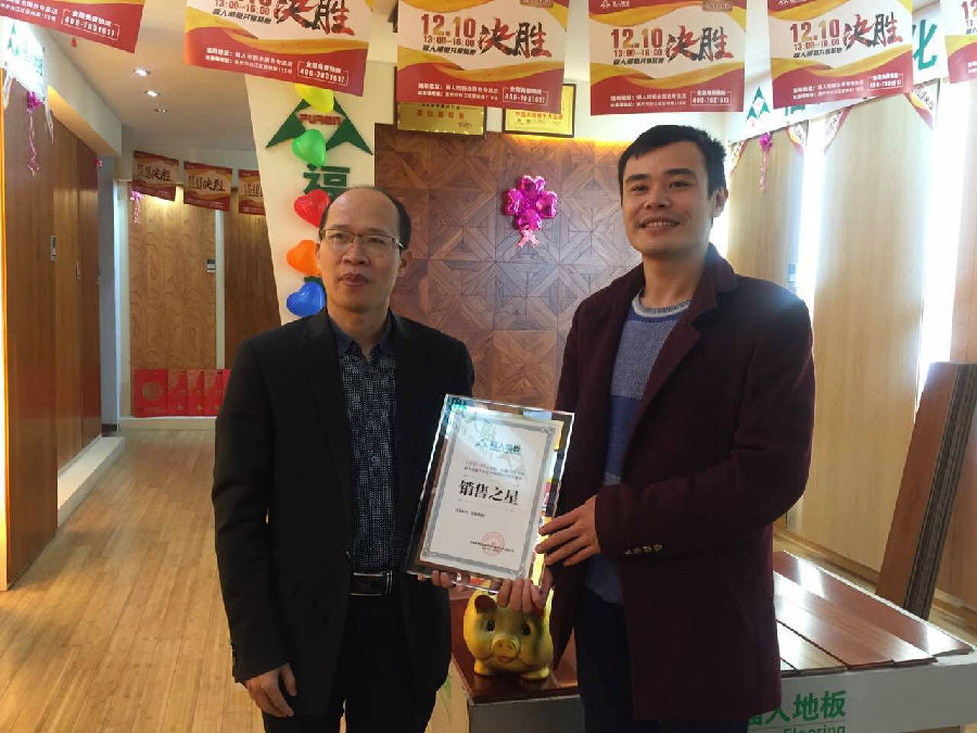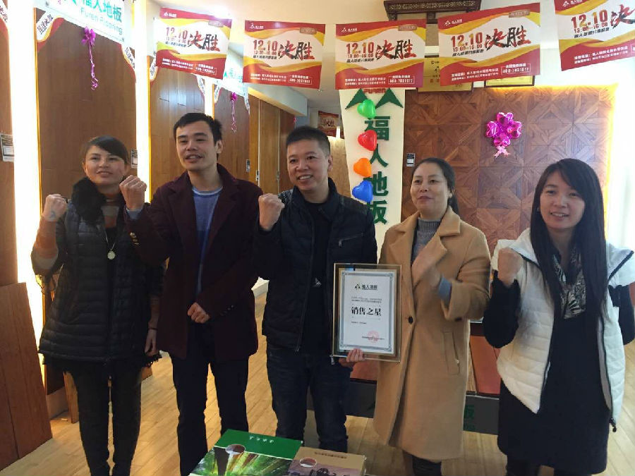 2016年11月27日,由中林福人與福建電視臺經濟頻道《完全家裝》共同攜手的福人地板“最美專賣店”暨銷售之星評選來到中國綠色之都---三明,福人地板銷售總監石開洪先生、福建大區經理洪鼎忠先生、市場部梅蔚軍先生、三明區域經理陳鏵先生參與此次活動。