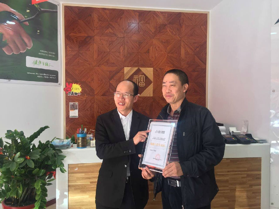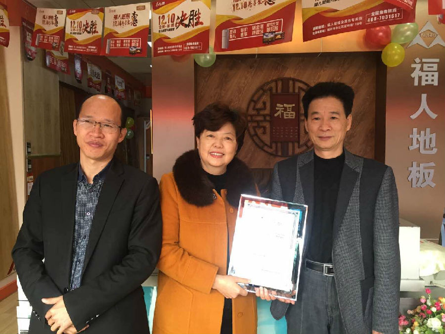 2016年11月28日,由中林福人與福建電視臺經濟頻道《完全家裝》共同攜手的福人地板“最美專賣店”評選來到中國特色美麗城市---龍巖,福人地板銷售總監石開洪先生、福建大區經理洪鼎忠先生、市場部梅蔚軍先生、福建區域經理陳鏵先生參與此次活動。