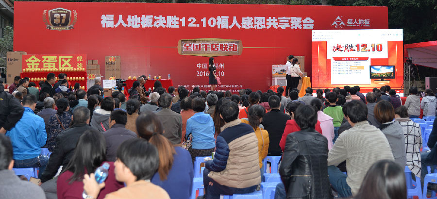 2016年12月10日,福人地板"決勝1210"感恩共享聚惠團購活動完美落幕!在這特殊的日子里,福人地板為家裝用戶們獻上一場地板的饕餮盛宴,高品質多款式的地板品類,比平常市面更加優惠的價格,貼心周到的服務,大大提高了消費者的采購熱情。福建電視臺經濟頻道《完全家裝》欄目、福建電視臺《與法同行》對本次活動全程報道。