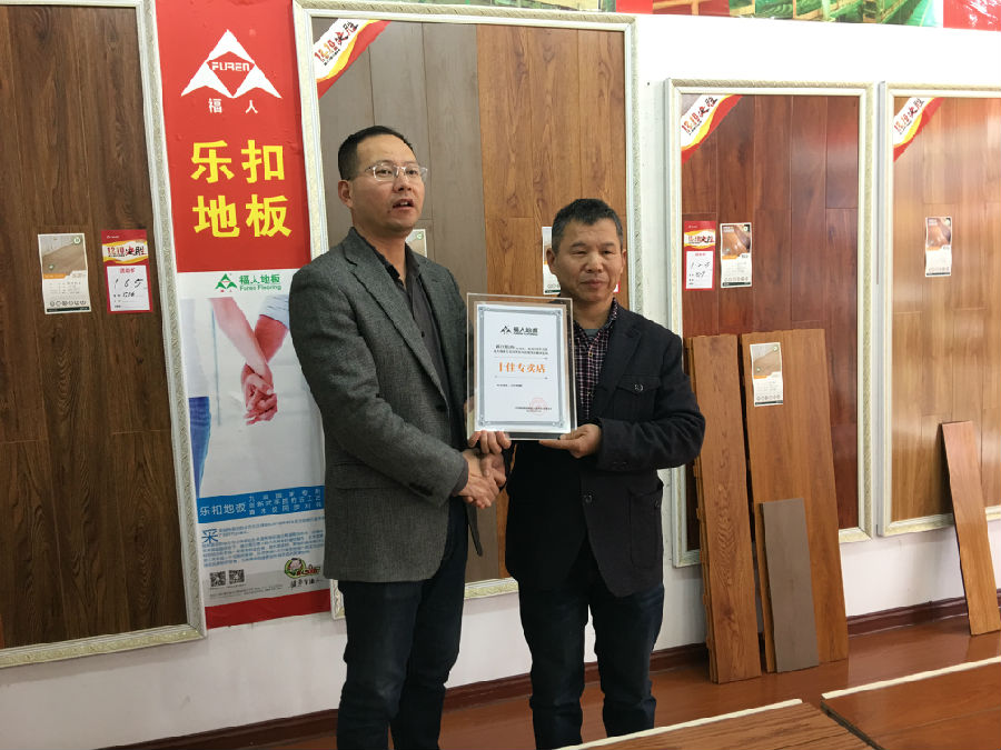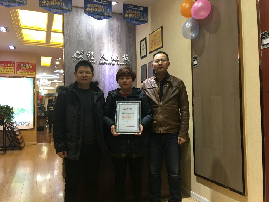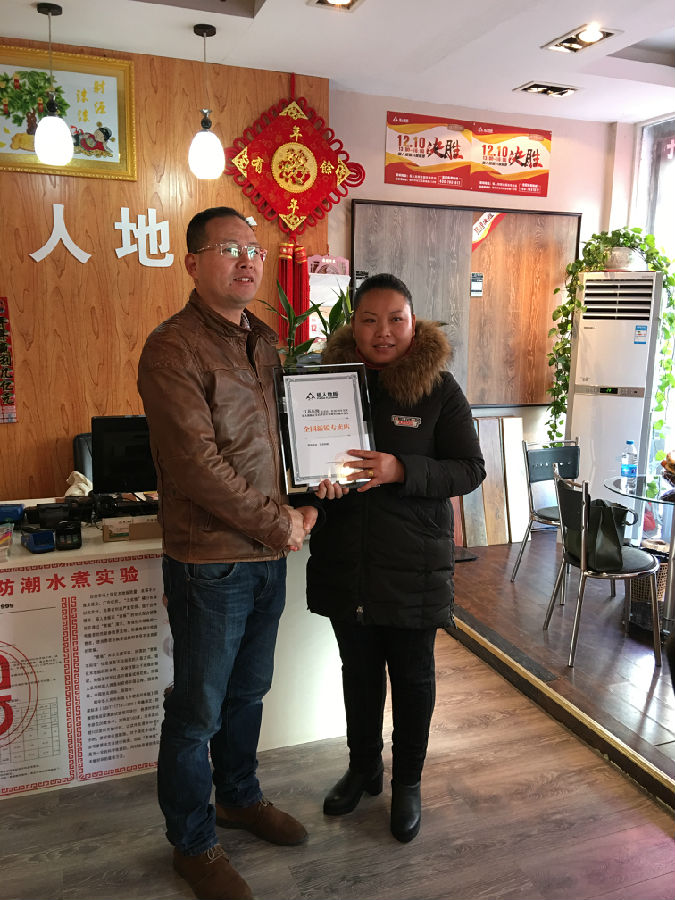 東海李總勤勞執(zhí)著,品牌意識(shí)強(qiáng),堅(jiān)持品牌推廣,新樓盤(pán)掃樓、水煮地板展示等,在短短3年時(shí)間里,在人口只有二三十萬(wàn)的小縣城將福人地板做得風(fēng)生水起,銷量步步高升,李總表示,2017年準(zhǔn)備大干一場(chǎng),讓我們期待李總的再次騰飛。東海福人榮獲“全國(guó)新銳專賣店”榮譽(yù)稱號(hào)。