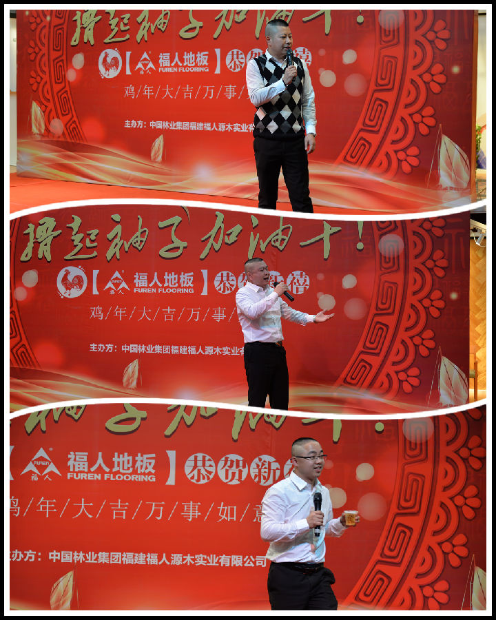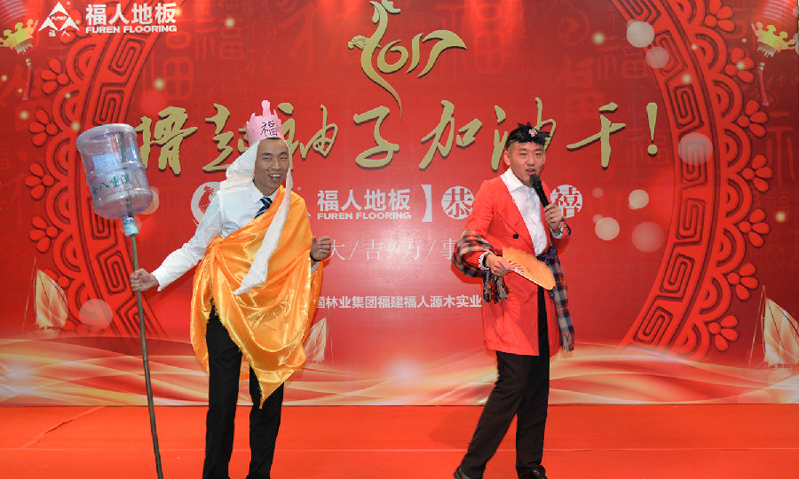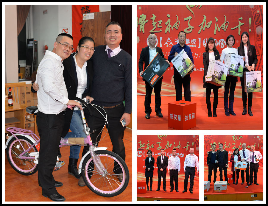 在畢董的賀詞下,福人地板年會正式拉開帷幕,此次晚會不僅有各部門精心準備的節目,更有激動人心的抽獎活動了。公司為晚會準備了豐富多彩的獎品,在抽獎嘉賓和主持人幽默的語言挑逗下,一位位幸運兒紛紛拿走了屬于自己的精美禮品。大家一邊品嘗著豐盛的晚餐,一邊焦急的等待著幸運之神的眷顧,說說笑笑,其樂融融。