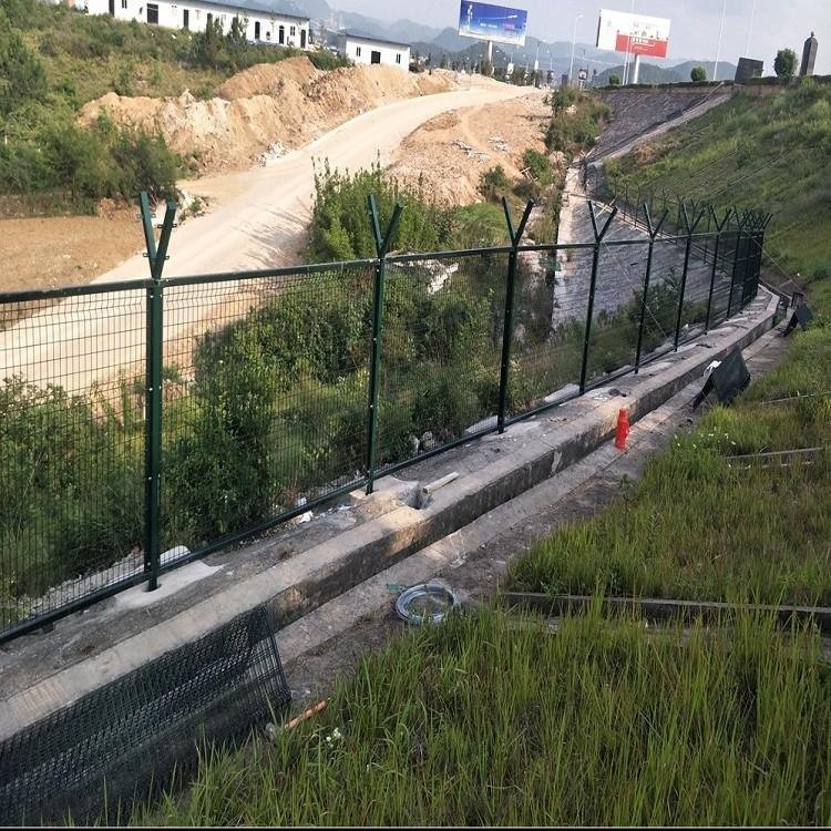 刺圈間距20-625px。機場鋼筋圍界網的立柱基礎應采用現澆混凝土制成,截面500500mm,高度800mm。