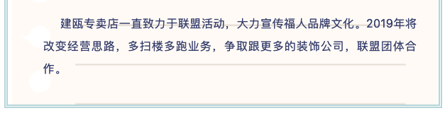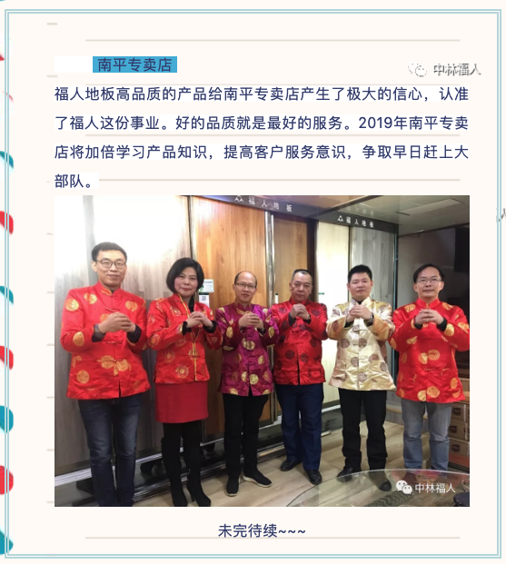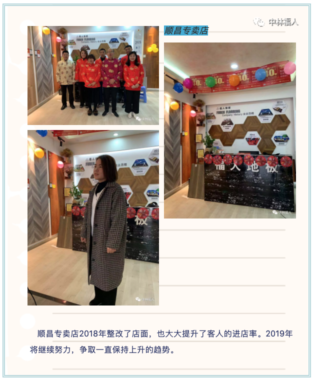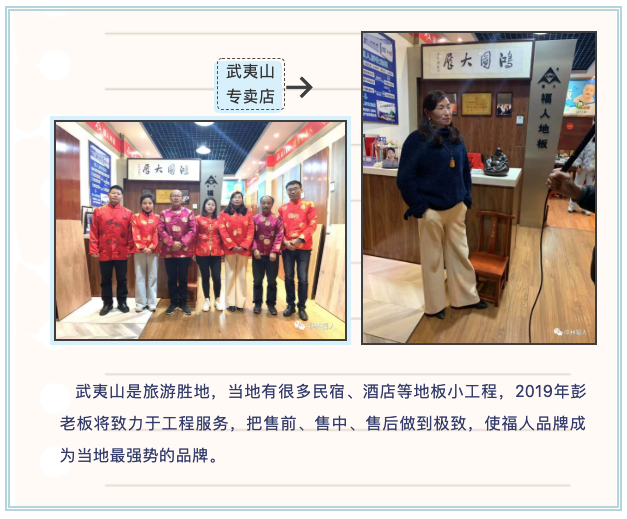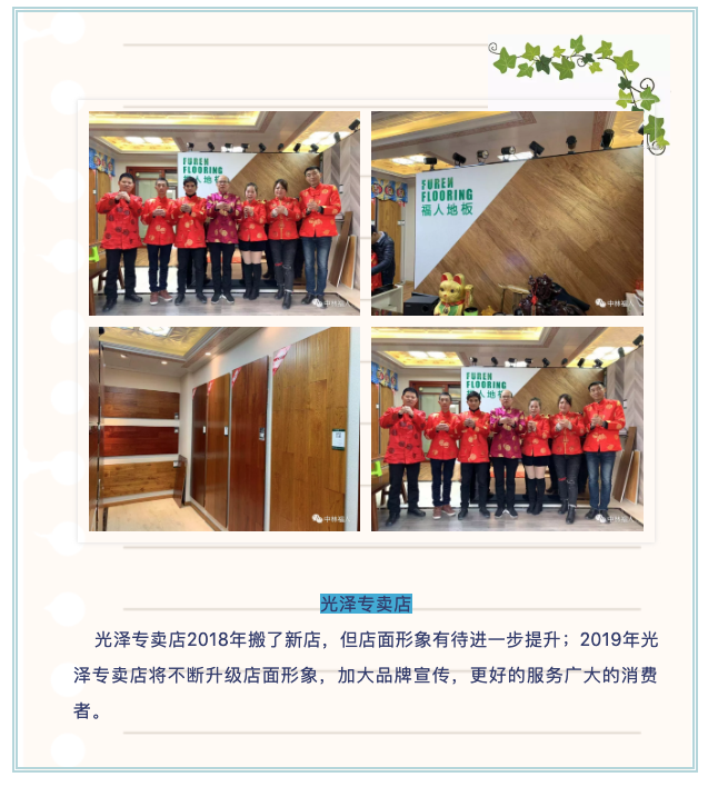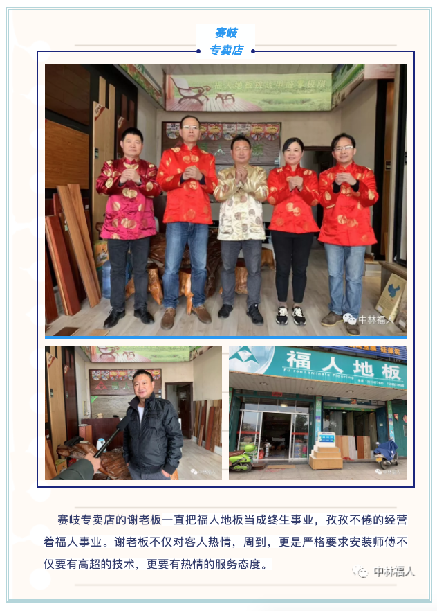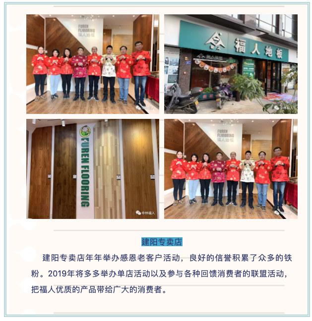 此次八閩行的主題——不忘初心,砥礪前行,福人地板百千萬工程新紀(jì)元。此次活動是公司組織走訪福建各區(qū)域,與優(yōu)秀經(jīng)銷商進(jìn)行溝通交流行業(yè)發(fā)展、目前存在的問題及解決方案,并統(tǒng)一思想,努力做好品牌價值鏈的傳遞,廠商結(jié)合共同服務(wù)消費(fèi)者,提高消費(fèi)者的消費(fèi)體驗(yàn),使福人地板成為以消費(fèi)者為中心的踐行者。各專賣店詳情如下: