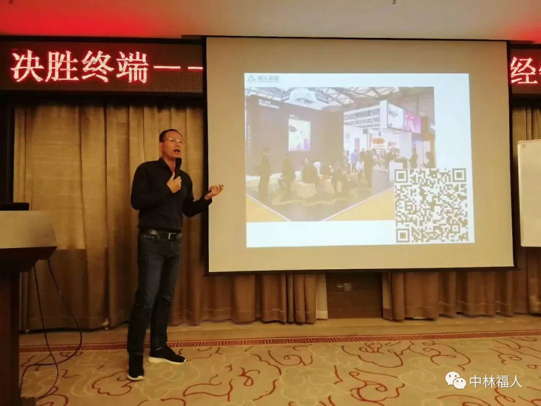 中國林業集團福建福人源木實業有限公司市場部總監葛旭東進行新品介紹。2019年正值福人建廠40周年,公司重磅推出多款新品。更加環保的無醛地板;更耐磨、經濟實惠的新型樓梯踏步;有別于傳統拼花地板,獨一無二的地板拼花等。葛總形象、生動的為經銷商朋友一一介紹,講解。