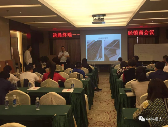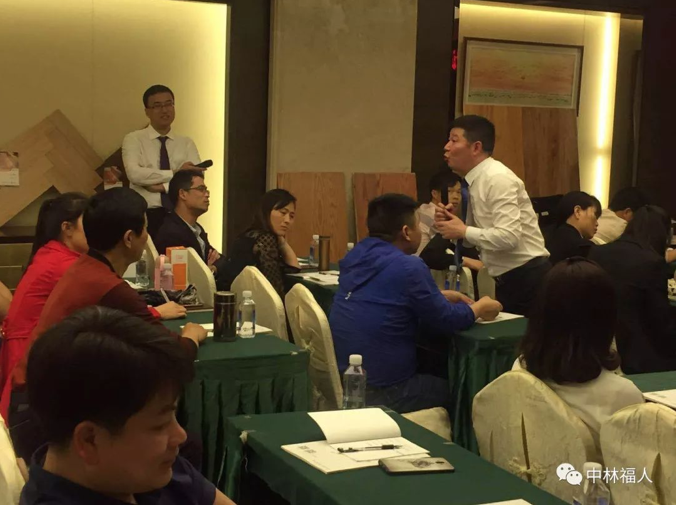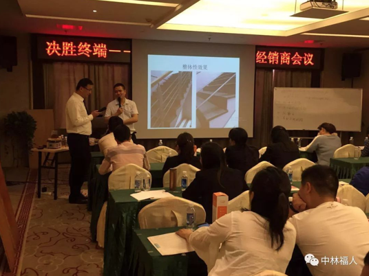 福人地板銷售副總監洪鼎忠進行強化性能實驗、實木產品知識及售后服務培訓。洪總從市場大環境入手,著重講解了實木安裝、實木售后處理及保養維護等知識。尤其是實木售后處理,一定要到現場勘查、分析問題、尋找原因、辨別結果、才能解決問題。
