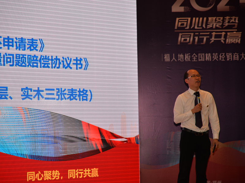 首先,福人地板營(yíng)銷總監(jiān)石開洪先生做開場(chǎng)演講。石總在演講中總結(jié)了上一年度銷售工作的情況,并對(duì)2021年度做了規(guī)劃和展望。我們將繼續(xù)堅(jiān)持“以消費(fèi)者為中心”,“做服務(wù)第一品牌”,為經(jīng)銷商提供更多的支持,和全國(guó)經(jīng)銷商朋友們一起互惠互利,攜手共贏,共同發(fā)展。
