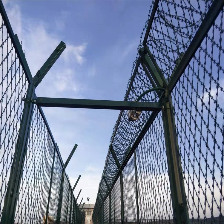 監(jiān)獄巡邏道鋼網(wǎng)墻V型頂端安裝刀片剌網(wǎng), 直徑采用50cm-60cm刀片剌網(wǎng)主要是由熱鍍鋅鋼板或不銹鋼薄板沖壓而成的,它擁有尖銳的刀片,張力鍍鋅鋼絲或者不銹鋼絲做芯線組合而成的產(chǎn)品。使得犯人無力翻越監(jiān)獄巡邏道鋼網(wǎng)墻。我們艾瑞金屬擁有豐富的產(chǎn)品生產(chǎn)及設(shè)計(jì)經(jīng)驗(yàn),為許多的監(jiān)獄和看守所生產(chǎn)過產(chǎn)品,我們從2012年開始就做了全國很多家監(jiān)獄的成功案例和機(jī)場的建設(shè)參與,我們的產(chǎn)品贏得了廣大新老客戶的一致好評,所以在監(jiān)獄鋼網(wǎng)墻生產(chǎn)和安裝方面有豐富的經(jīng)驗(yàn)和案例,有這方面的咨詢,歡迎來廠、來電咨詢產(chǎn)品。