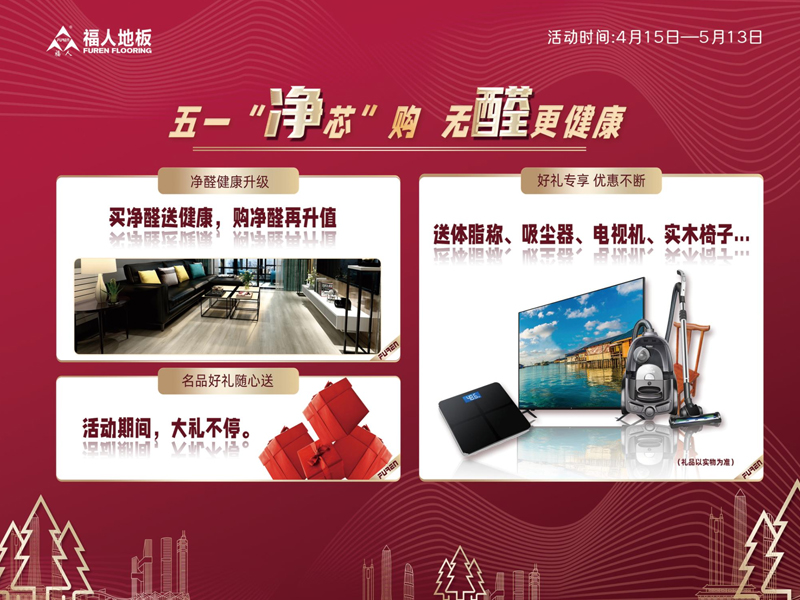 據悉此次福人地板【五一“凈芯”購】活動將一直持續到5月13日,全國各大門店都有眾多優惠等著大家,歡迎大家五一期間到附近門店選購。