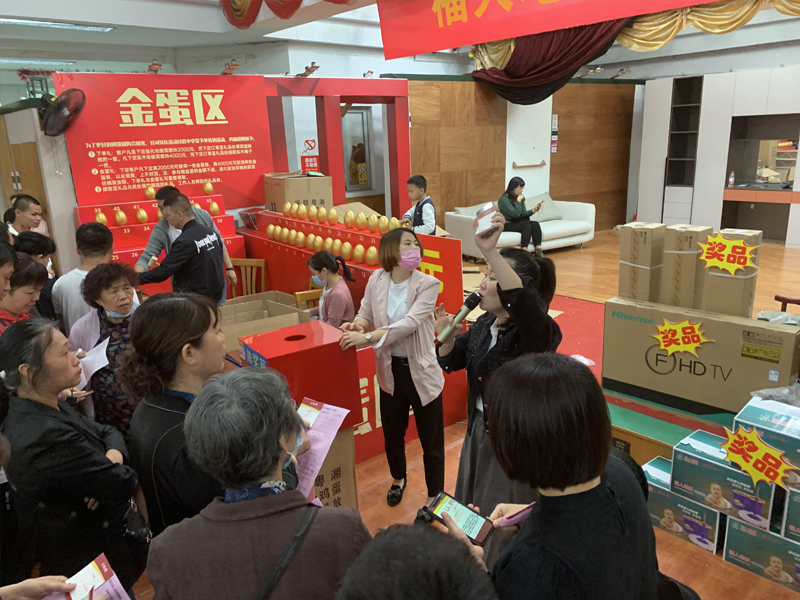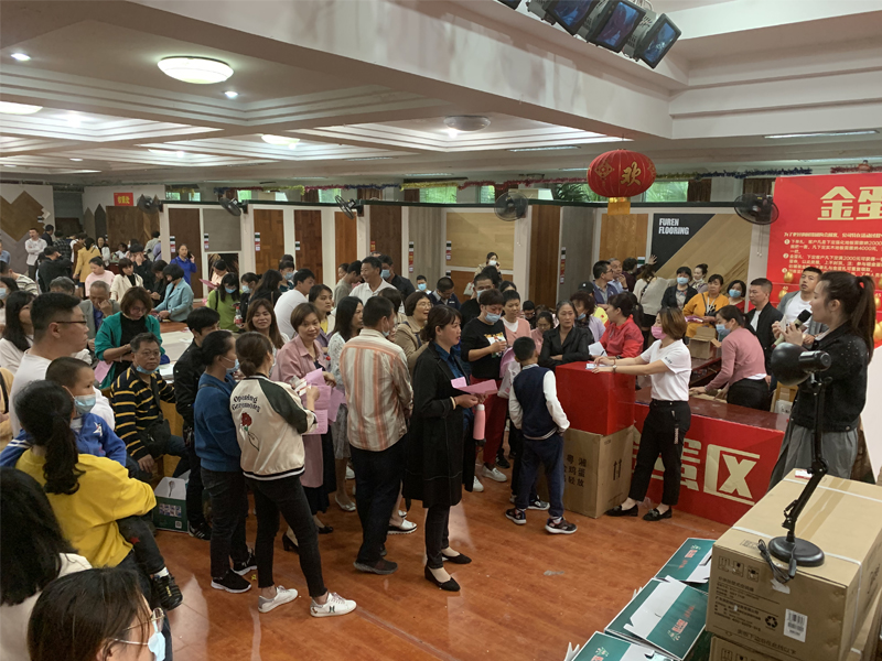 活動現場福人地板不僅為消費者準備了品質過硬的產品,工廠直供價,更有超多福利:認購下單就有禮、金蛋砸不停、還有終極大抽獎,現場火爆非凡。短短兩個半小時的團購會吸引了數千人咨詢及下單。