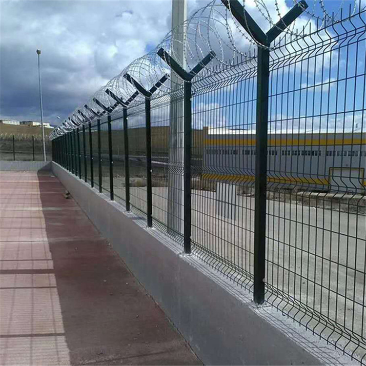 機場圍界又稱作“機場護欄”、“Y型安全防御護網”,它是由V型支架立拄,加強型焊接片網,安全防盜連接件和熱鍍鋅刀片剌籠組成。