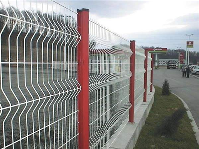 三角折彎護欄網布局:用高強度冷拔絲與低碳鋼絲焊接后通過液壓成型,用銜接附件與鋼管支柱固定。